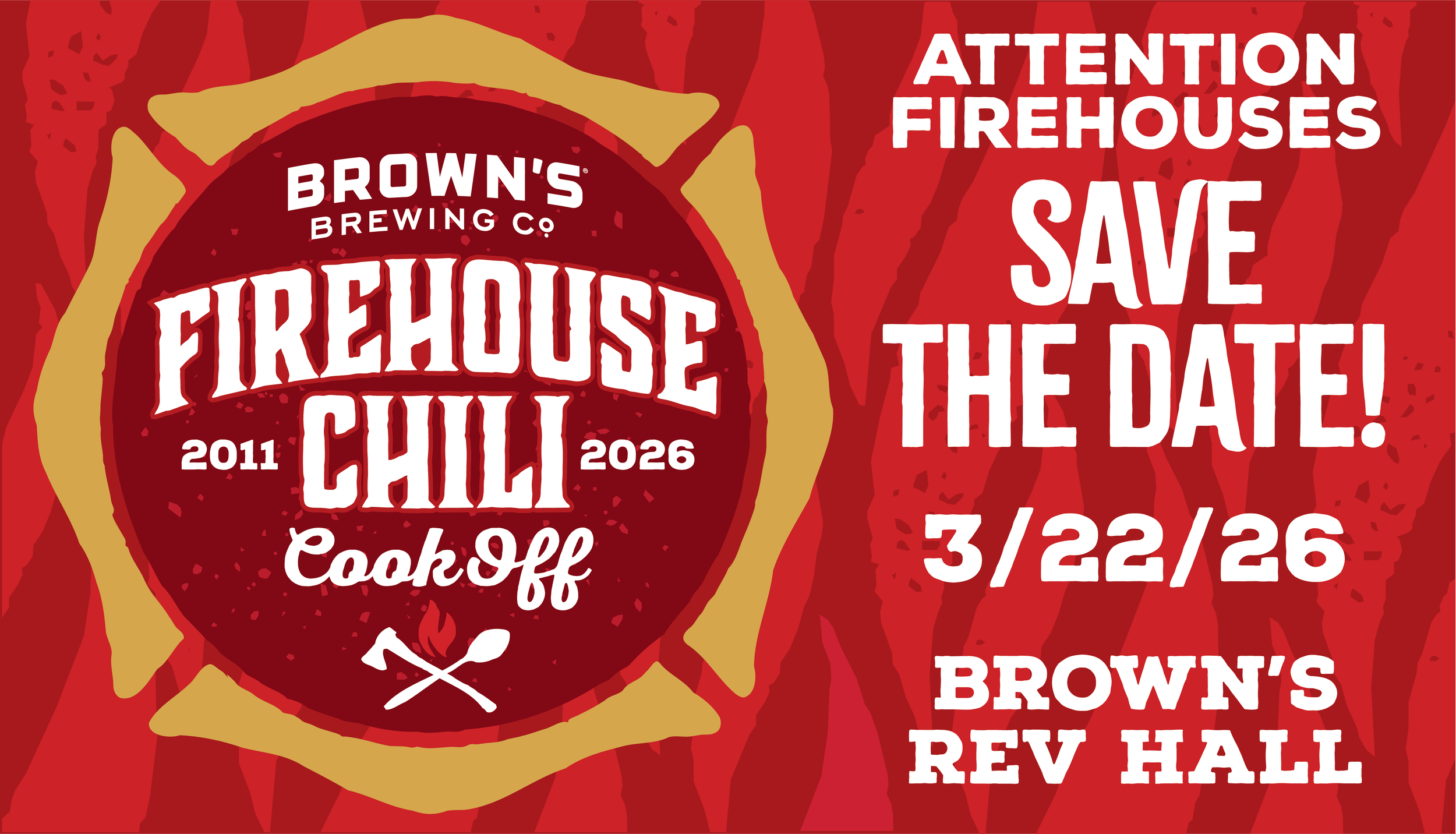 To register your firehouse, email firehouse name, your name, e-mail address, firehouse mailing address, and type of chili(s) you’re entering to events@brownsbrewing.com. Please enter “2026 Firehouse Chili CookOff” in the subject line. Please register by February 28.